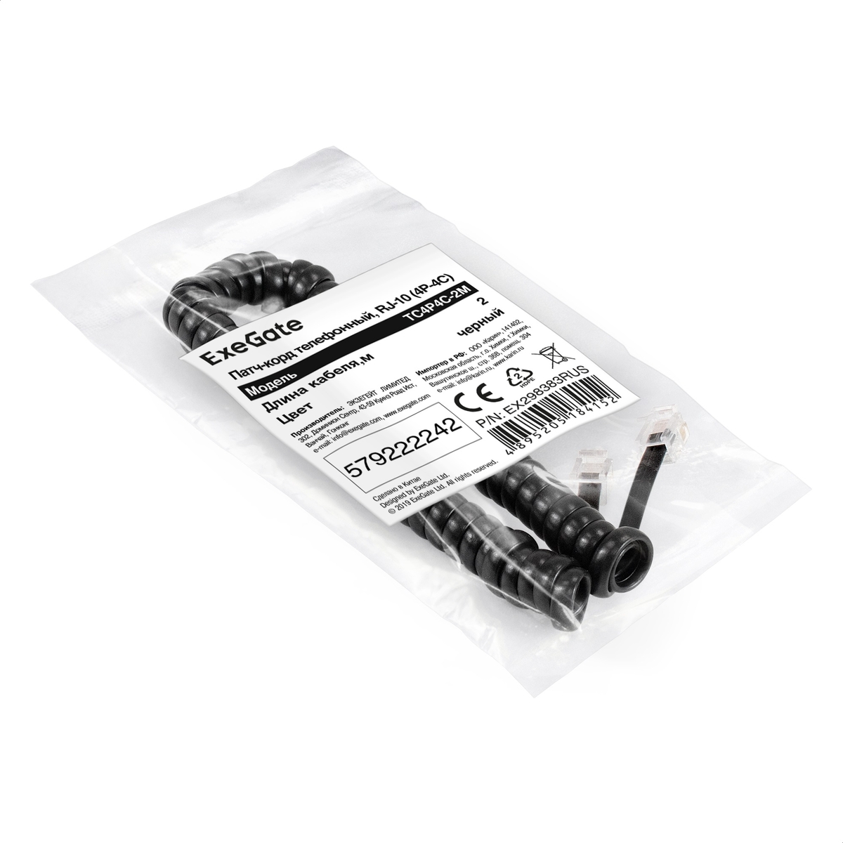 Шнур (патч-корд) телефонный ExeGate TC4P4C-2M (витой, RJ-10 (4P-4C), 2м, черный)