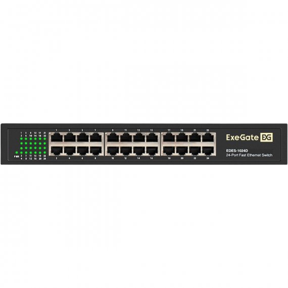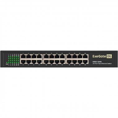 Коммутатор неуправляемый ExeGate EDES-1024D (24-портовый UTP 10/100Mbps, металлический корпус, с возможностью установки в стойку)