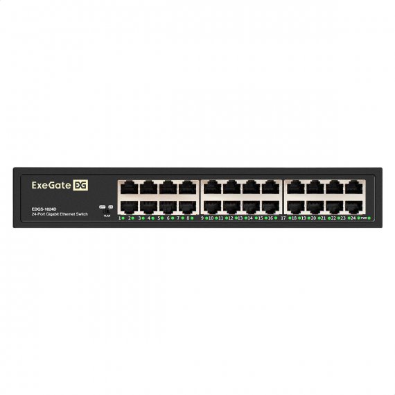 Коммутатор неуправляемый ExeGate EDGS-1024D (24-портовый гигабитный UTP 10/100/1000 Base-T, металлический корпус, с возможностью установки в стойку, с функцией энергосбережения (EEE))