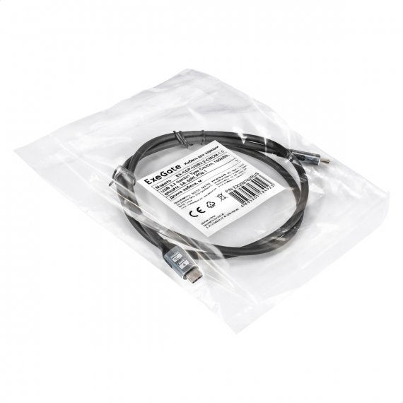 Кабель для зарядки Type-C - Type-C SuperSpeed+ 10Gbps ExeGate EX-CCP-USB3.2-CMCM-1.0 (USB 3.2 Gen2x1 Type Cm/Cm, 10Gbit/s, 8K60Hz, 5A, 60W, PD3.1, 1м)