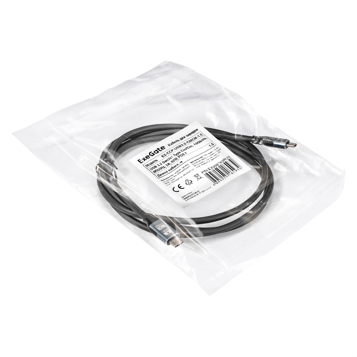 Кабель для зарядки Type-C - Type-C SuperSpeed+ 10Gbps ExeGate EX-CCP-USB3.2-CMCM-1.5 (USB 3.2 Gen2x1 Type Cm/Cm, 10Gbit/s, 8K60Hz, 5A, 60W, PD3.1, 1,5м)