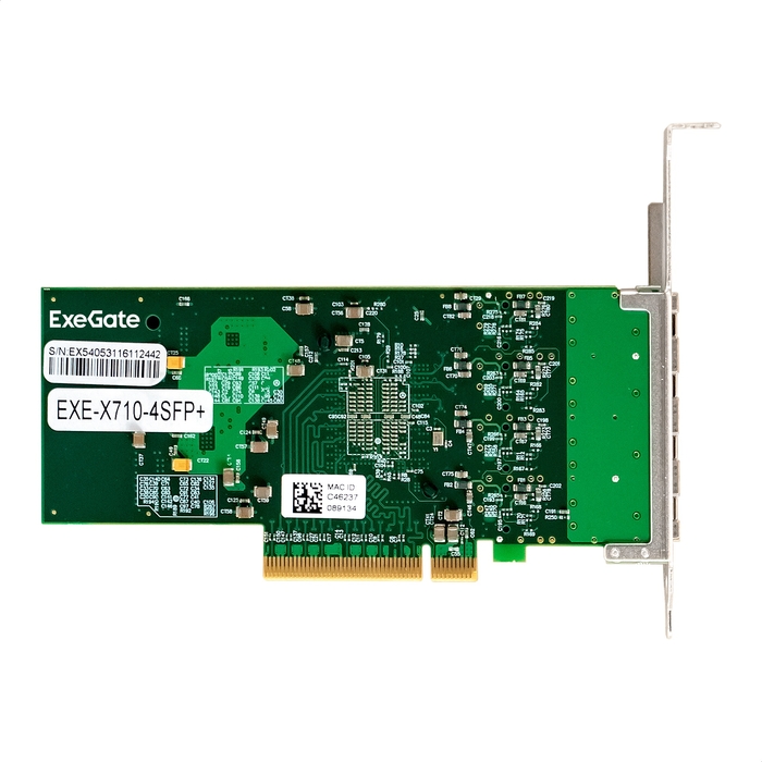 Сетевой адаптер ExeGate EXE-X710-4SFP+ (PCI-E x8 v.3, порты 4x SFP+, Quad 10Gb/s, Server NIC Chipset Intel FTXL710)