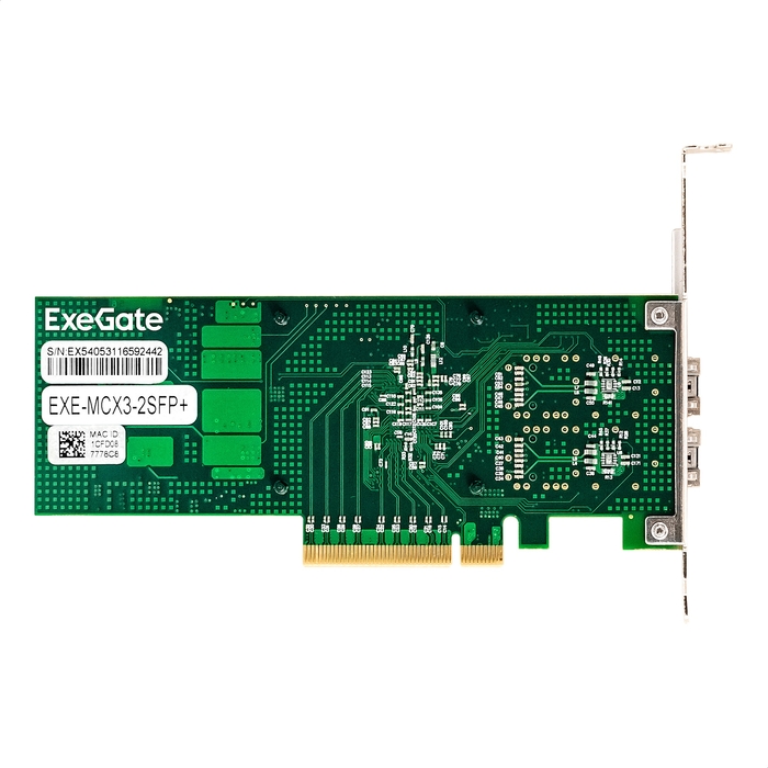 Сетевой адаптер ExeGate EXE-MCX3-2SFP+ (PCI-E x8 v.3, порты 2x SFP+, Dual 10Gb/s, Server NIC Chipset Mellanox ConnectX-3)